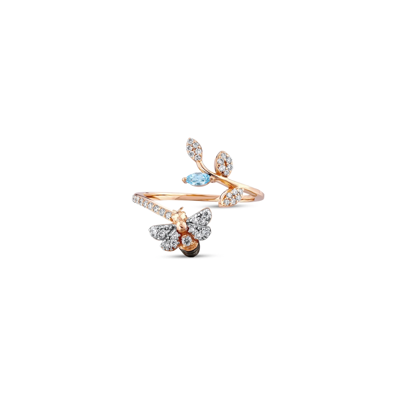 QUEEN BEE MELISSA GOLD DIAMOND BLUE TOPAZ RING