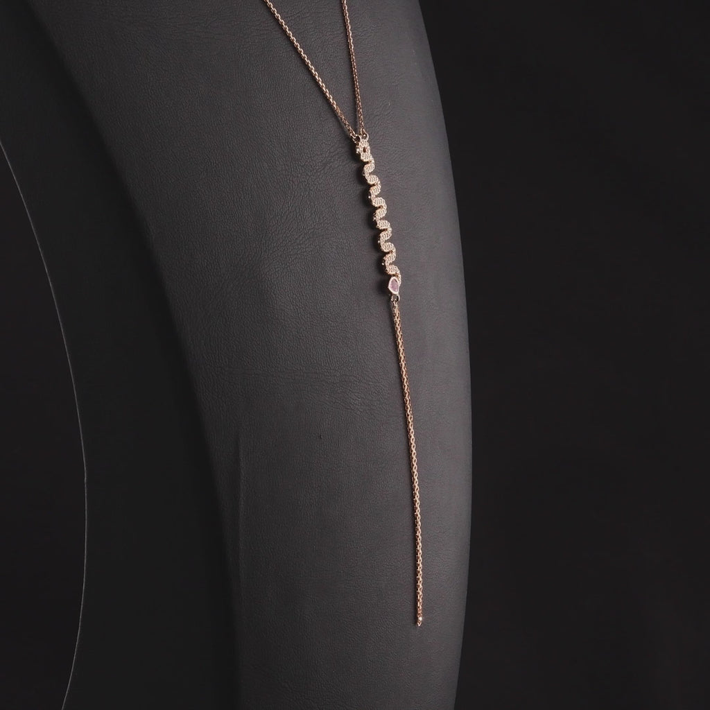 Awaken the divine energy within you with the Kundalini Rainbow Gold Diamond Pink Sapphire Hand Chain, a transcendent piece that embodies the sacred flow of life force. Crafted in radiant 14K rose gold, this exquisite hand chain features a delicate intertwining design that symbolizes the awakening of Kundalini—the nurturing motherly spirit that guides you toward enlightenment and self-realization. Embellished with 0.15 Ct G-VS-SI diamonds and 0.19 Ct pink sapphires, this piece radiates pure love and high consciousness, inviting you to embrace your deepest emotions and foster compassion for yourself and others. The 3.5 cm symbol height resonates with the power of transformation, reminding you of your innate strength and grace. Transform your journey of self-discovery and empowerment with this versatile piece, beautifully worn as both a hand bracelet and necklace. Allow the Kundalini hand chain to be your talisman, guiding you toward infinite joy and peace. Embrace your goddess essence and let your spirit soar; adorn yourself in the elegance of sacred energy.