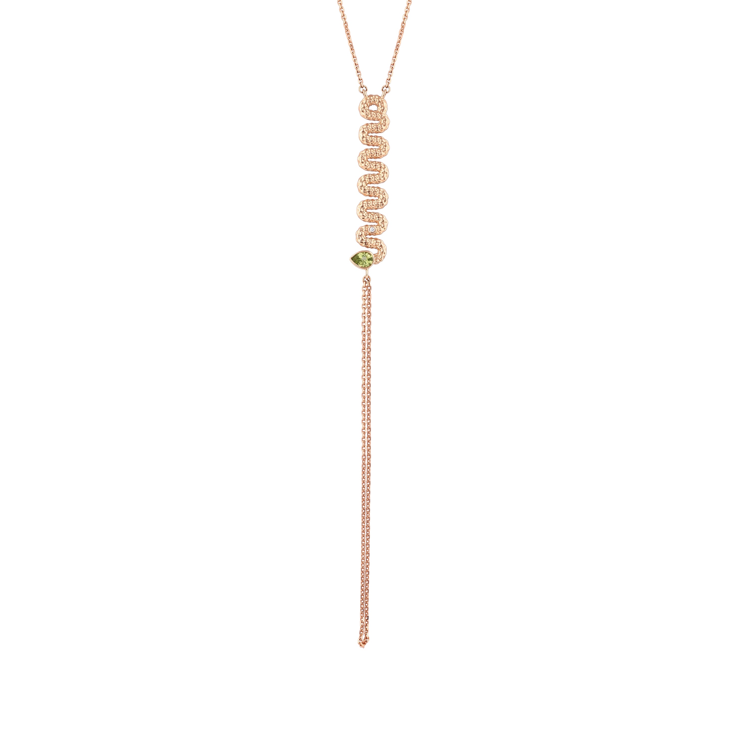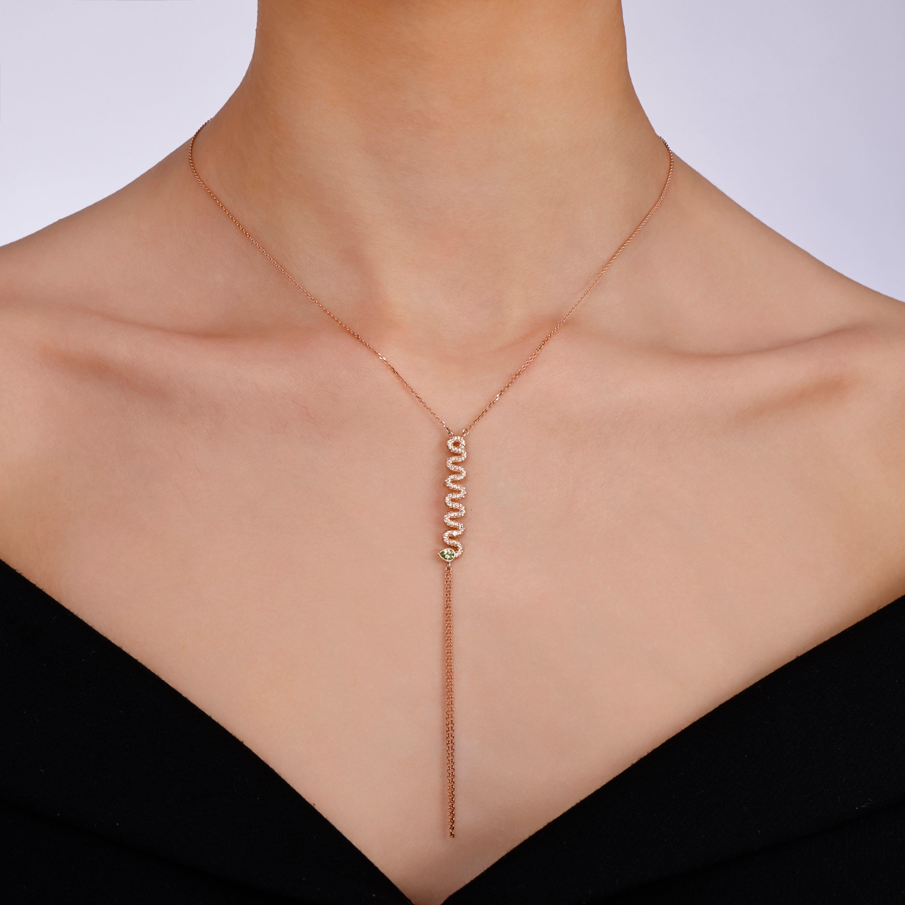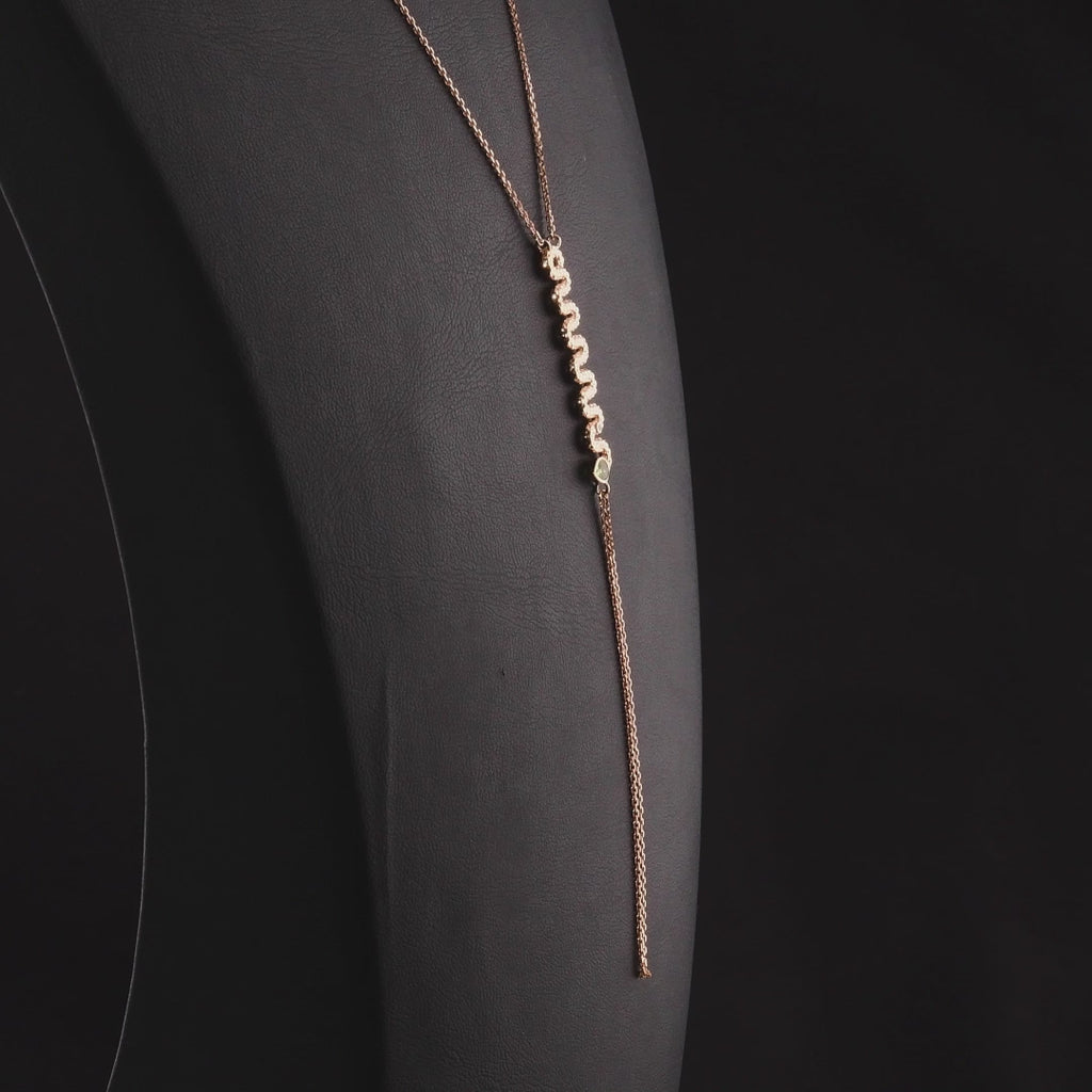 Awaken the divine energy within you with the Kundalini Rainbow Gold Diamond Peridot Hand Chain, a transcendent piece that embodies infinite joy and peace. Crafted in sumptuous 14K rose gold, this exquisite hand chain serves as a radiant reminder of the Kundalini—the nurturing life force that flows through your being, guiding you toward self-realization and enlightenment. Adorned with a delicate 0.01 ct G-VS-SI diamond, symbolizing purity and higher consciousness, and a vibrant 0.16 ct peridot, known for its ability to evoke deep emotions and pure love, this piece is more than jewelry; it’s a spiritual talisman. Wear it as a hand bracelet or transform it into a necklace, embracing the versatility of your inner goddess. Allow the energies of self-respect and concern for others to flow through you as you adorn yourself in this elegant expression of empowerment. Embrace your journey towards enlightenment—let the Kundalini awaken your spirit and illuminate your path.