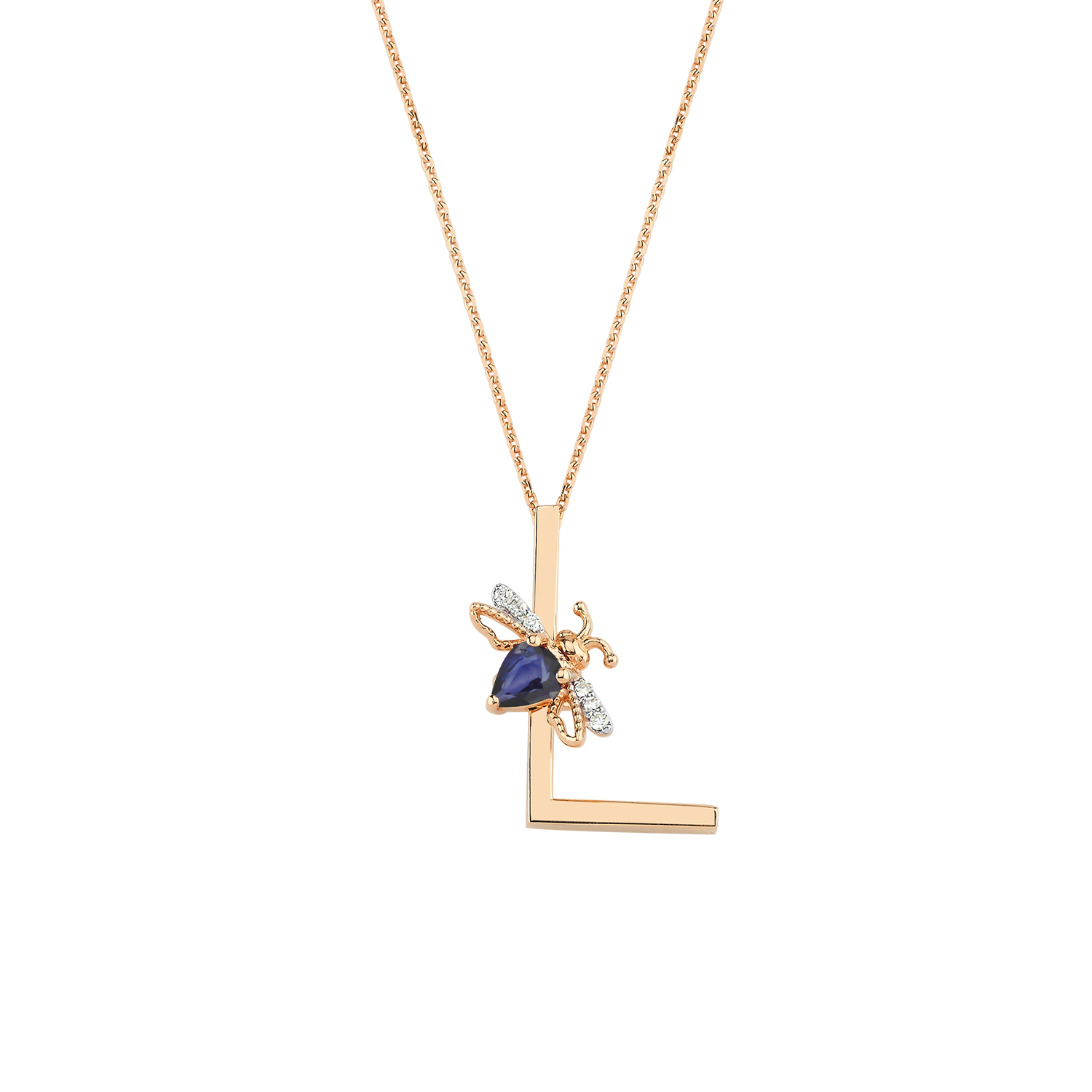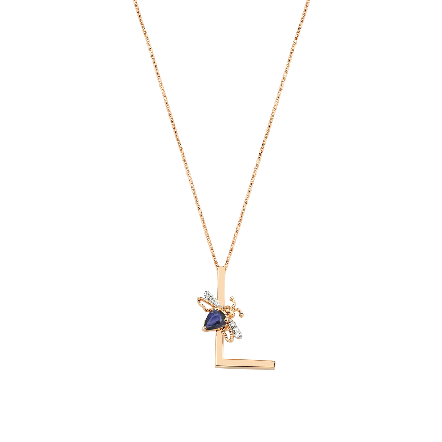 Embrace the luminous essence of your inner Queen with the LETTER L GOLD DIAMOND SAPPHIRE NECKLACE, a divine talisman intricately crafted in 14K rose gold. This enchanting piece, adorned with a sparkling 0.02 Ct diamond and a captivating 0.18 Ct sapphire, embodies the spirit of the Queen Bee—an emblem of feminine power, beauty, and spiritual wisdom. Each glance at the shimmering 'L' serves as a reminder of love, light, and the abundance that flows through you. As the Queen of the Sun, she reigns over joy, renewal, and collaboration, inviting you to harness your innate potential and illuminate your path. The delicate craftsmanship, with a symbol height of 1.5 cm and a 40 cm chain, reflects not just elegance but the clarity and support found in unity and structure. Let this exquisite necklace be your guiding star, a celebration of your journey and a call to embody the goddess within. Wear it as a beacon of empowerment and watch as your world transforms with the magic of intention. Step into your light; the universe awaits your brilliance.