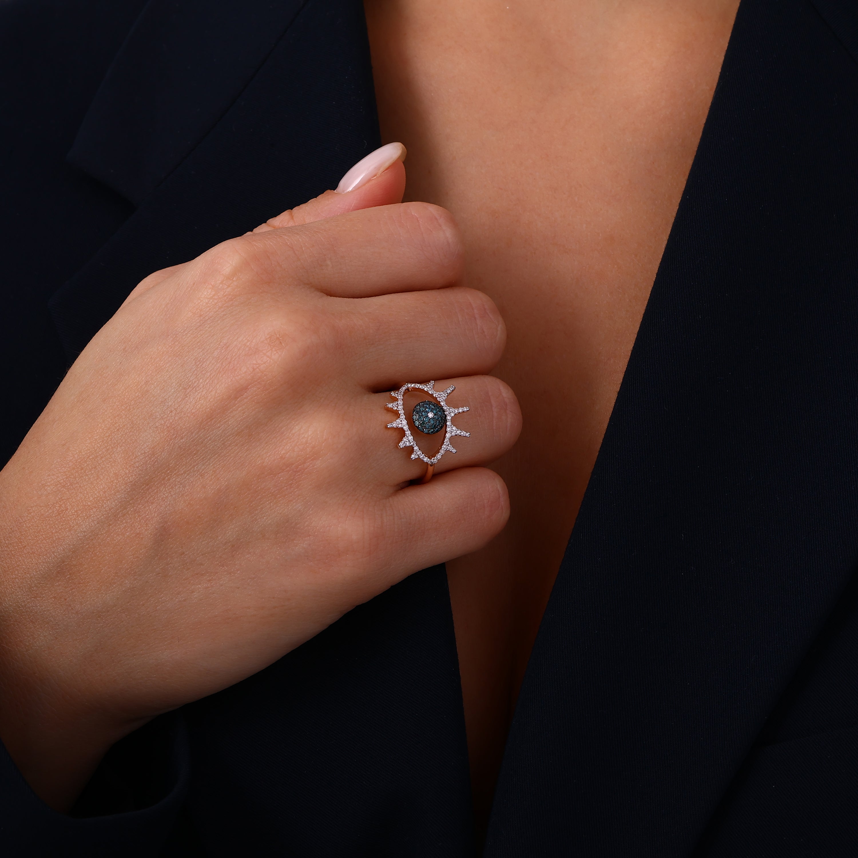 Awaken your spirit with the EYE LIGHT GOLD BLUE DIAMOND RING, a breathtaking talisman that embodies illumination and wisdom. Crafted from luxurious 14K rose gold, this exquisite piece features a dazzling 0.26 ct G-VS-Si diamond, complemented by a captivating 0.2 ct blue diamond that radiates the essence of enlightenment. The eye, a timeless symbol of sacred knowledge, invites you to receive the beauty of life and reflect it back into the world. As you wear this enchanting ring, feel your heart open to the light of your soul, guiding you towards new beginnings and expansive opportunities. With every glance, the EYE LIGHT unlocks your intuition and clarity, empowering you to channel your inner treasures and navigate life’s journey with grace. Embrace the magic of rebirth and illumination—wear this talisman to nurture your spirit and illuminate your path. Step into your divine truth and let your inner light shine. Adorn yourself with this piece, and become the goddess of your own story.