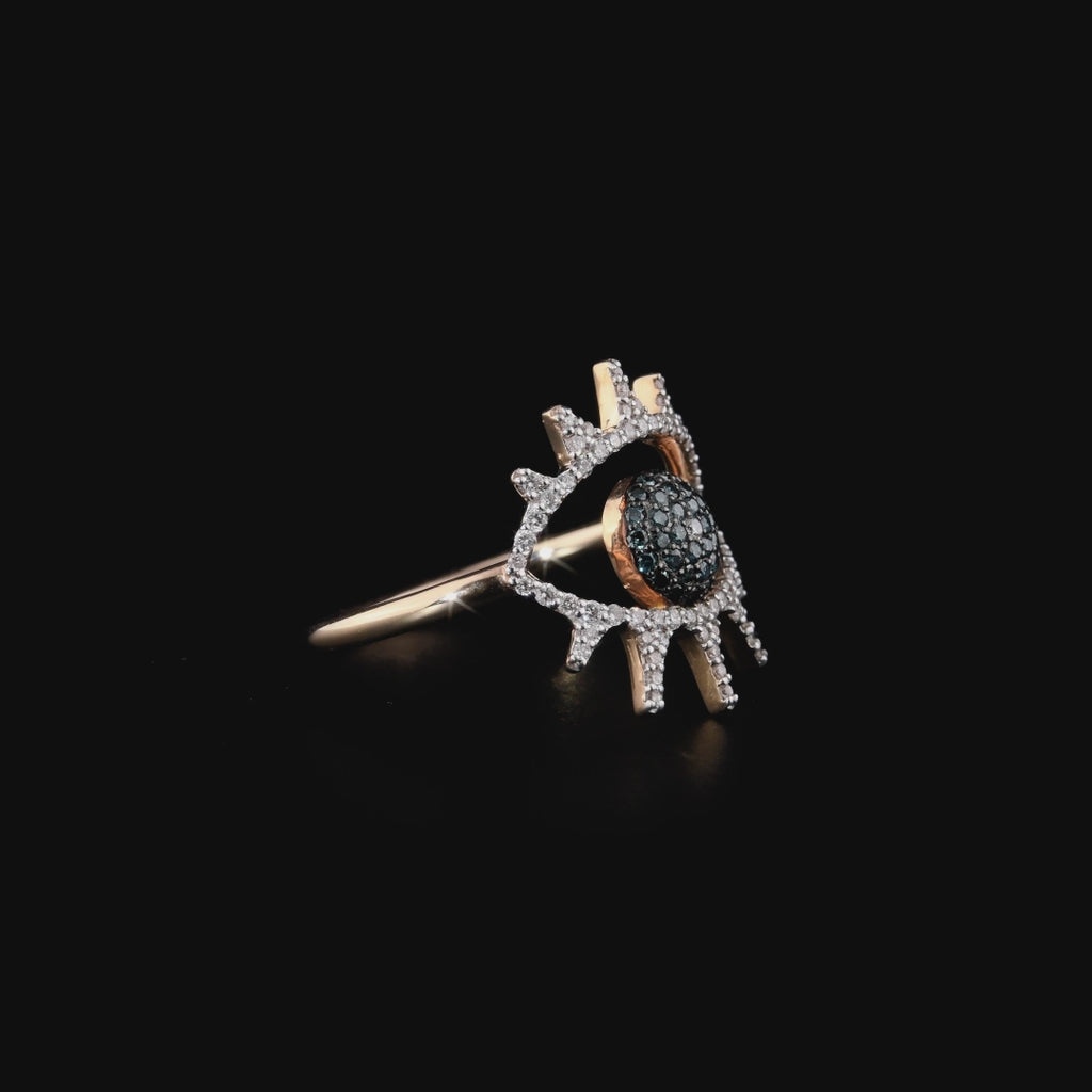 EYE LIGHT GOLD BLUE DIAMOND RING