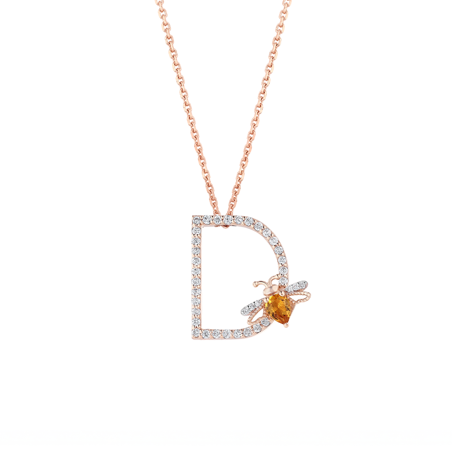 Embody the essence of divine femininity with the LETTER D GOLD DIAMOND CITRINE NECKLACE, a luxurious talisman inspired by the radiant Queen Bee. Crafted from opulent 14K rose gold, this exquisite piece features a delicate 0.20 Ct diamond, shimmering with the clarity of spiritual insight, and a vibrant 0.13 Ct citrine, the stone of joy and abundance. As the Queen of the Sun, she channels the wisdom of the soul, inviting renewal and collaboration into your journey. This necklace serves as a sweet messenger, infusing your spirit with light and love while celebrating the beauty of your individuality. Worn close to your heart, it becomes a powerful symbol of empowerment, guiding you toward clarity and abundance. Embrace your inner goddess and let this enchanting piece illuminate your path. Adorn yourself with the magic of the Queen Bee and awaken the radiant power within. Your transformation begins here; wear it as a reminder that you are the architect of your own destiny.