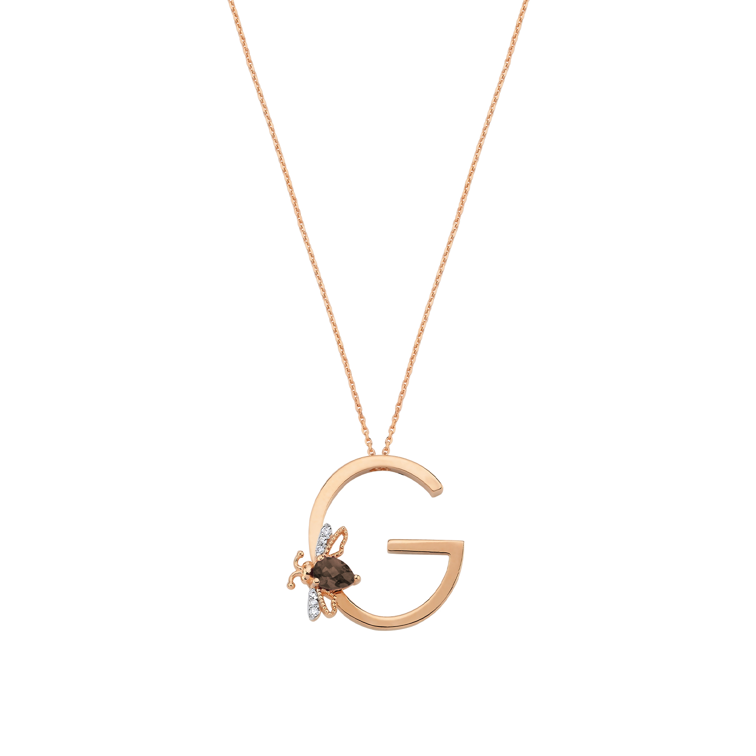 LETTER G GOLD DIAMOND SMOKY TOPAZ NECKLACE
