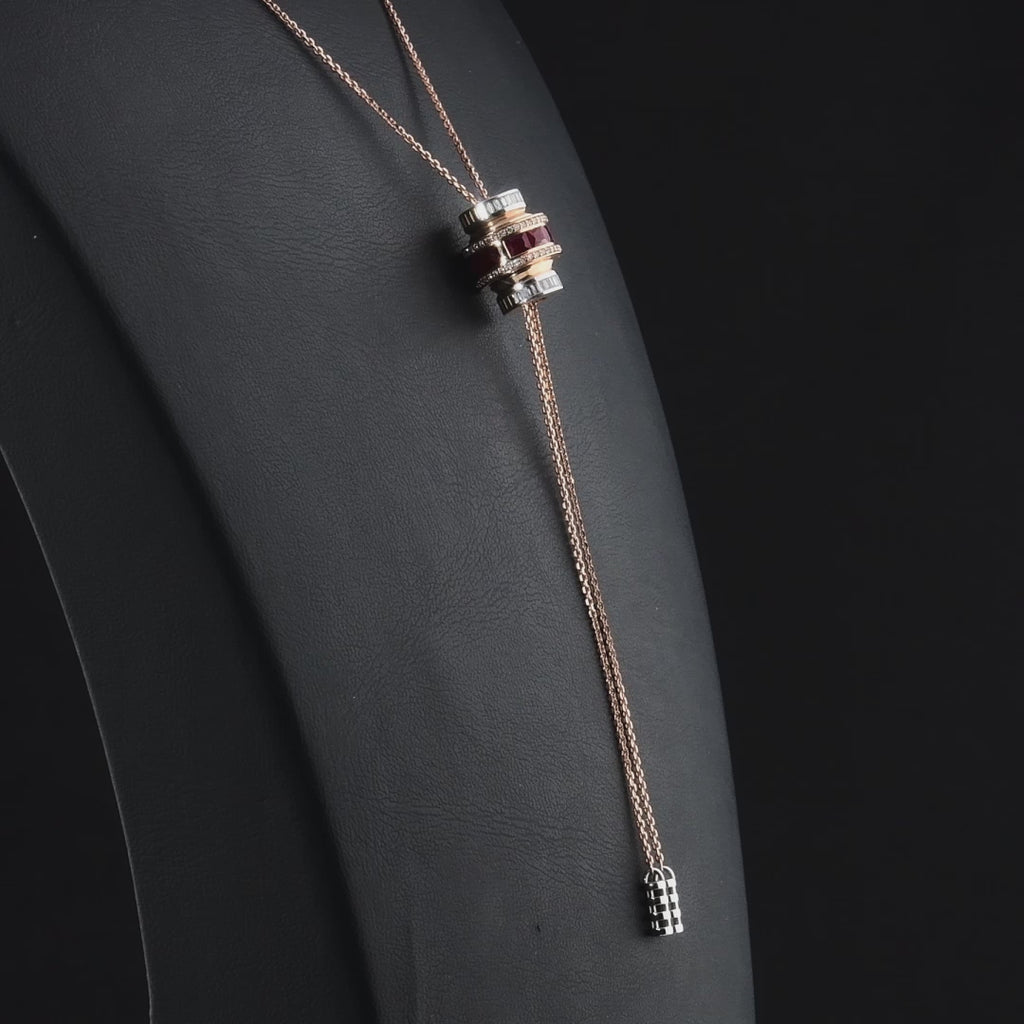 MONDRIAN RAINBOW GOLD BAGUETTE DIAMOND RUBY NECKLACE