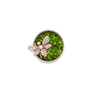 QUEEN BEE BON BON GOLD BAGUETTE DIAMOND PERIDOT RING