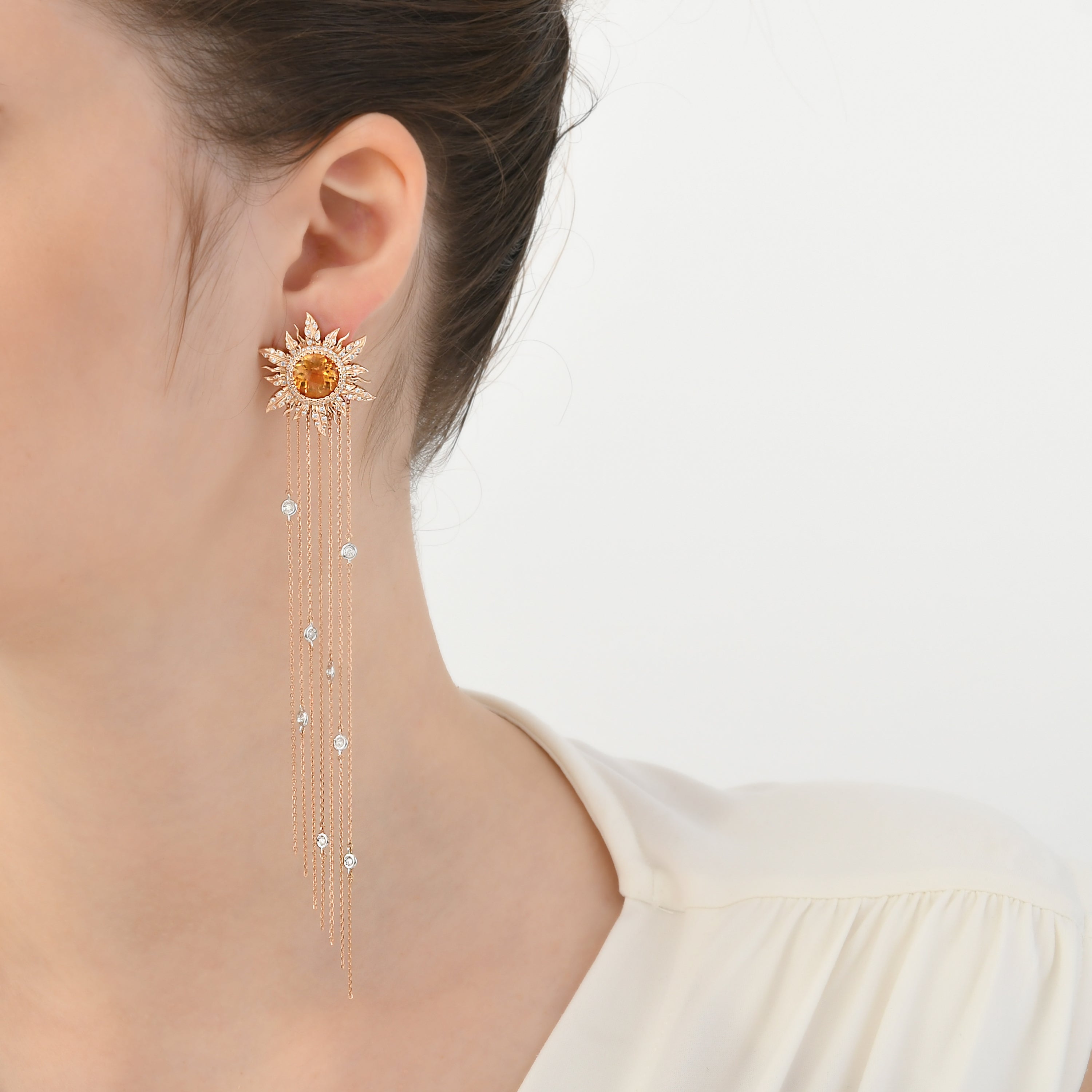 SUN GLAMOUR GOLD DIAMOND CITRINE EARRINGS