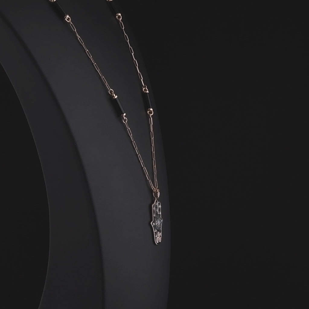The hand of Fatima is an ancient talisman that symbolizes feminine power, protection, blessings, power and strength. It promotes healing and fosters miracles. Aligning a community on a universal energy field, the hand transmits the gifts of health, peace and restoration, not just to the wearer but also to those she keeps near.The hand is worn as a defense against negative energy.