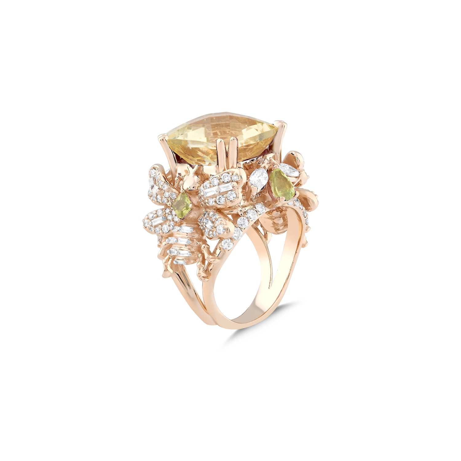 QUEEN BEE ARINNA GOLD DIAMOND PERIDOT RING