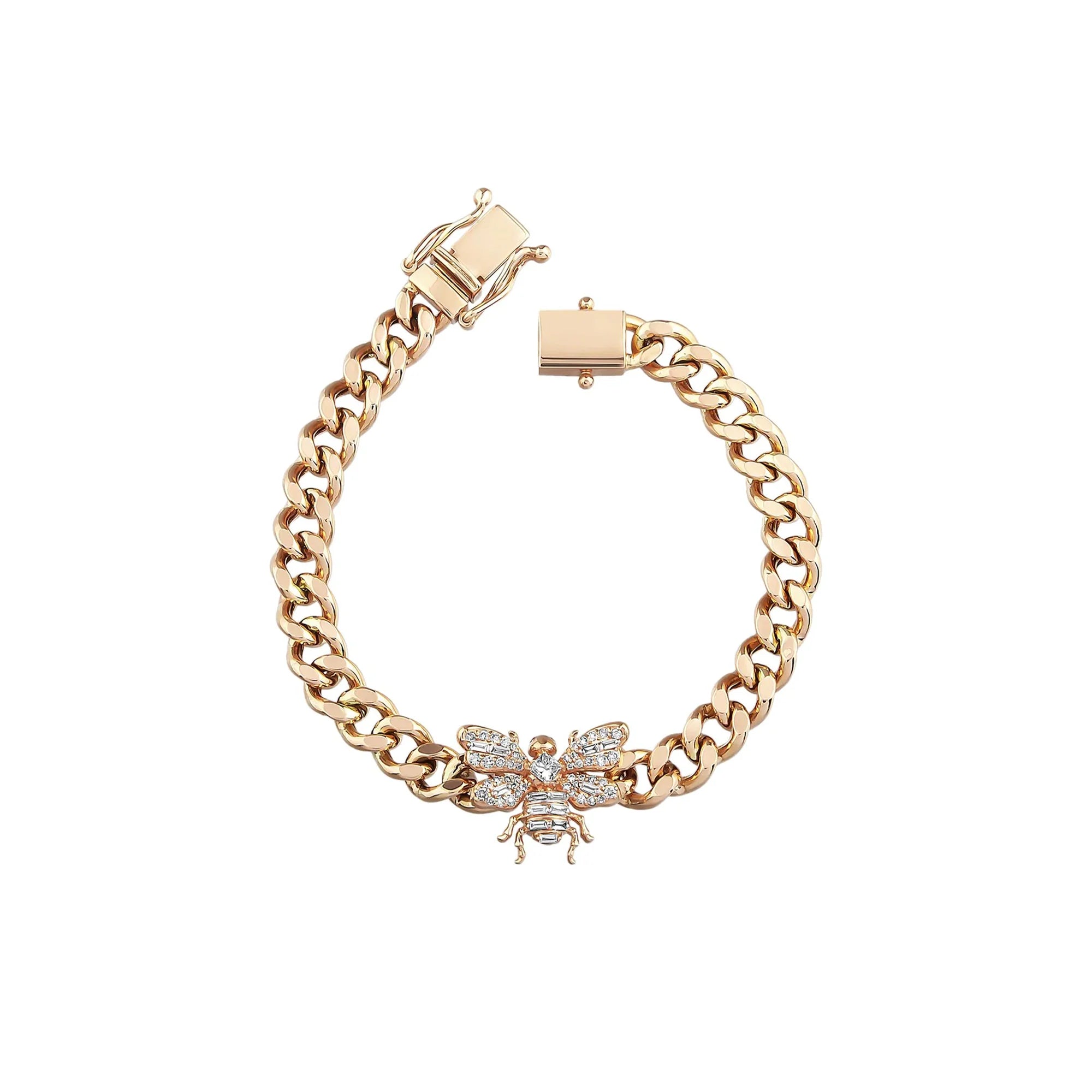 QUEEN BEE HANIA ELEGANCE GOLD BAGUETTE DIAMOND CHAIN BRACELET
